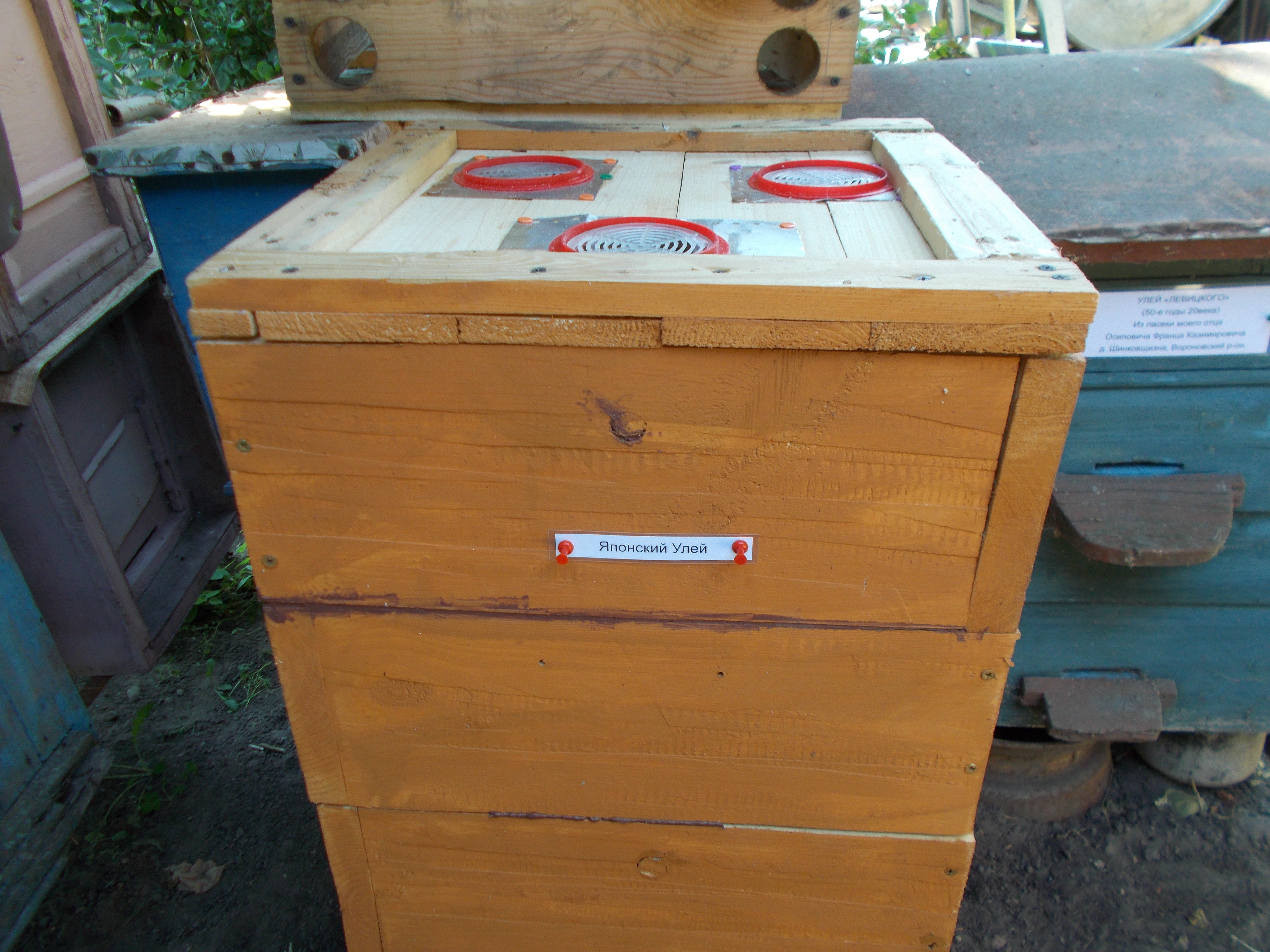 Я сделал 2 турецких улья на круглую рамку, для получения секционного сотвого меда экомеда. Имеется также 2 японских улья - безрамочные. Эти улья я ипользую для получения прессованого меда.