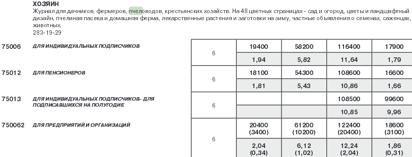 на картинках (нажать для увеличения) указаны тарифы и подписные индексы