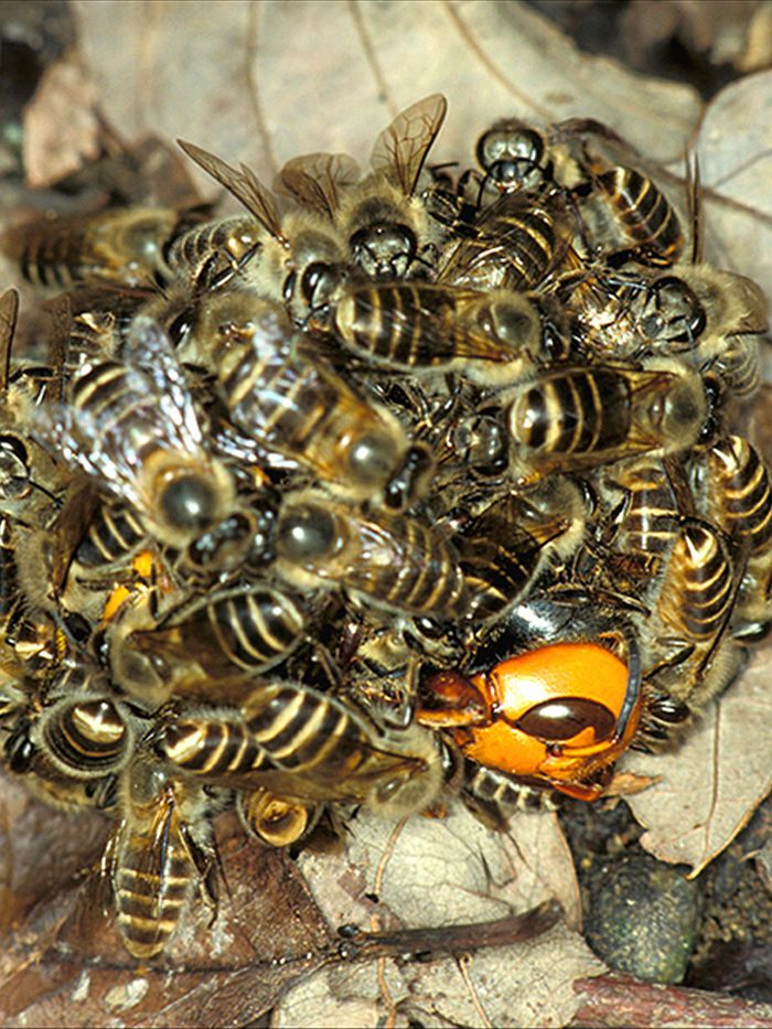 Личинки шершня кормятся насекомыми