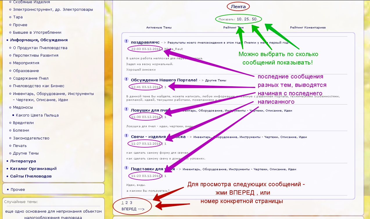 Можно выбрать сколько именно последних сообщений (тем) выводить на странице!