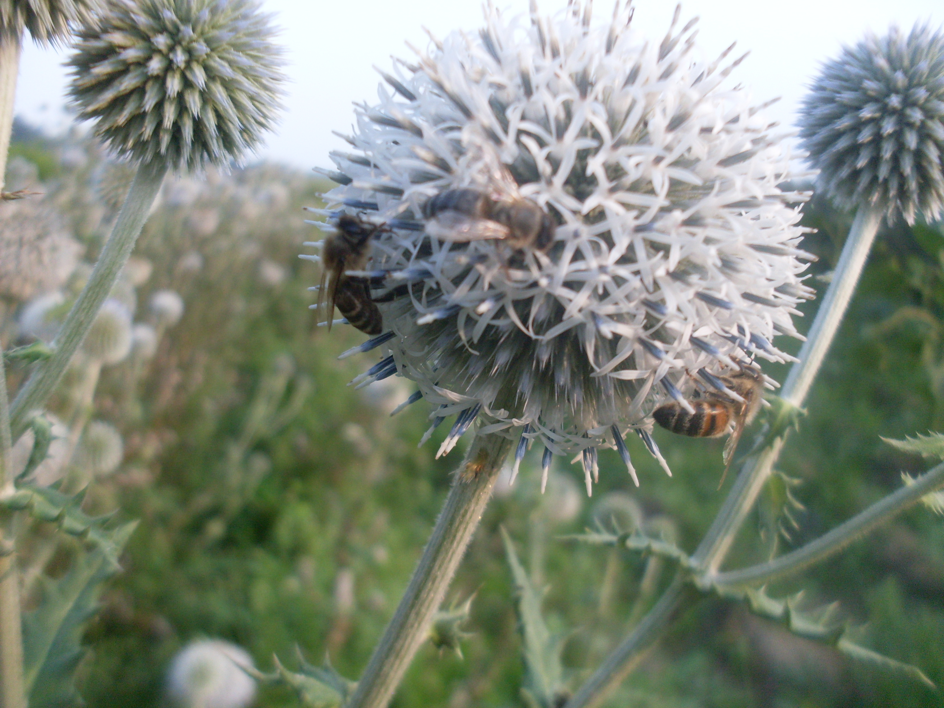Одним из мощных медоносов второй половины лета является мордовник шароголовый .Это многолетнее травянистое растение высотой до 2 метров .Используется как лекарственное ,медоносное и декоративное растение. Впервый год образует розетку листьев и мощный корень .Цветет и дает семена на второй и последующие годы .
