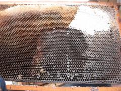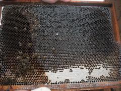 Проверте пчёл на клеща. Так как пчёлы погибли не в клубе, то ясно что холода здесь не причём. Раз рамки не опоношены, то и не в кормах дело, кишечник у пчёл был явно не переполнен.