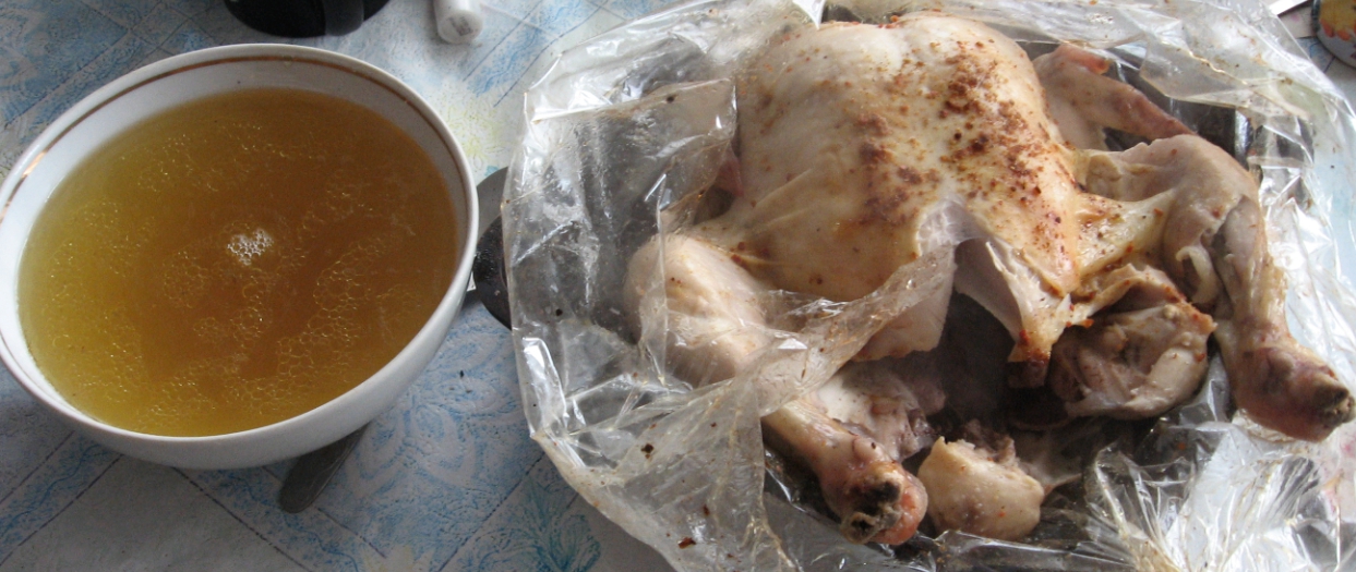 Купили в евроопте сегодня курицу. сполоснули по приезду. посыпали приправками солькой, в пакет и духовку.