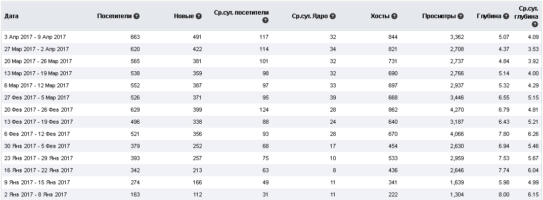 статистика понедельно с января - > Статистика сайта от Mail.ru