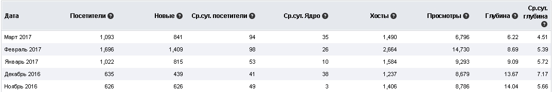 Статистика сайта от Mail.ru хорошо раскрывает следующие показатели: