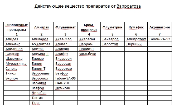 Были подробно рассмотрены действующих вещества препаратов против варроатоза. Много данных в табличной форме с цифровой информацией.
