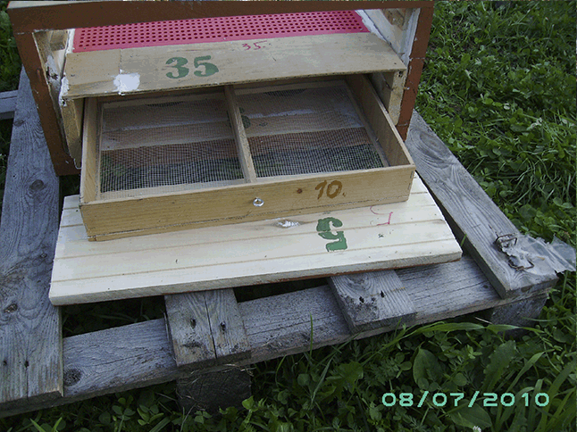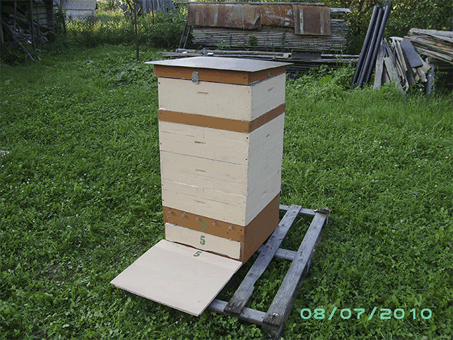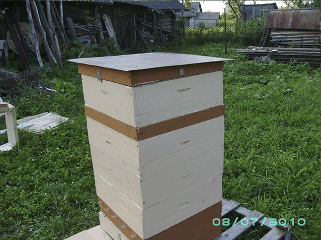 ДЛЯ ОТВОДКОВ я использую этот же корпус, закрытый снизу ДВП или фанерой. Этот корпус ставится на основную пчелосемью, летком, направленным в противоположную сторону от основного.