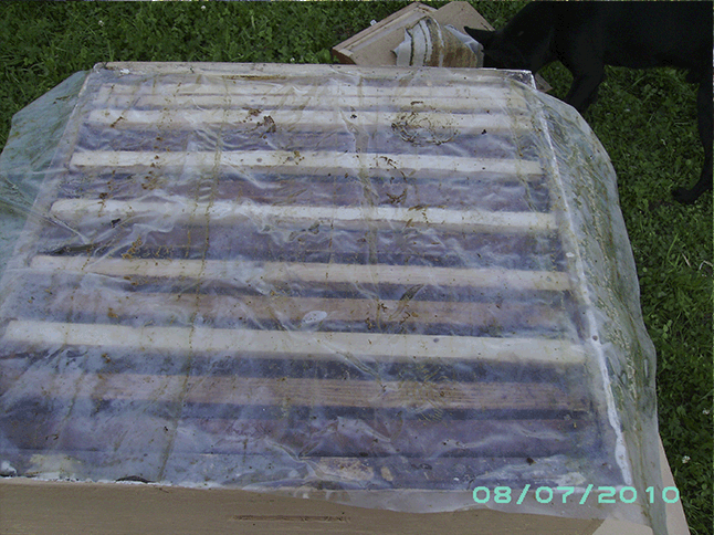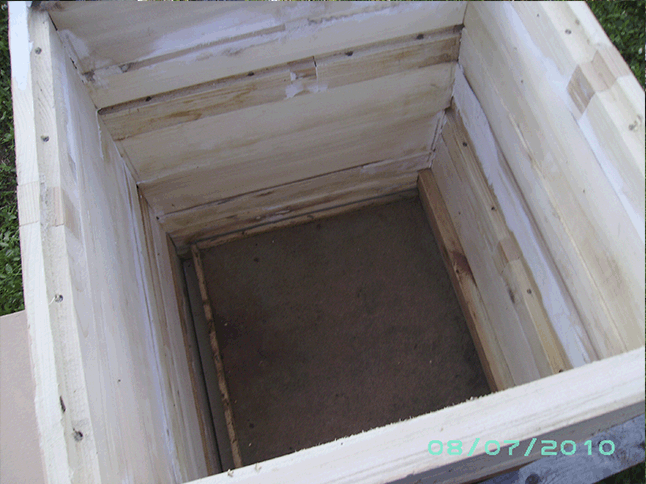 КРЫШКА – состоит из рамки, сверху которой закреплена специальными приспособлениями жесть (без единого гвоздя). Под жестью находится пенопласт, а дальше гофрокартон или ДВП.