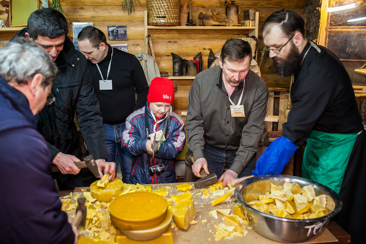 2015 Пчеловоды Витебского общества очень благодарны о. Дионисию, рассказавшему об обряде и предложившему его провести. Побольше таких предложений нужно от форумчан и активного участия. Из 21 члена клуба "Золотой улей" культурно-исторического комплекса "Золотое кольцо Витебска "Двина", где нам безвозмездно представляется место для сбора, приняло участие в подготовке и обряде 11 пчеловодов общества, сделавшие из пуда воска три свечи в помещении этого комплекса, низкий им поклон и благодарность от нашего объединения. Трудились на славу дружно и сплоченно, вот где единение на лицо и многое познается друг о друге. Попечитель общества, отец Михаил, настоятель Свято -Успенского кафедрального собора, занимающий пчеловодством, организовал службу по проведению обряда в самом соборе, где оставлены наши свечи. Было много людей, которым было объявлено наше мероприятие. Это вызвало удивление и благодарность от всех. Большинство стремились зажечь свои свечи от наших зажженных и освещенных. Весь процесс заснят телекампанией "Наше ТВ Витебск" и будет показан в новостях.